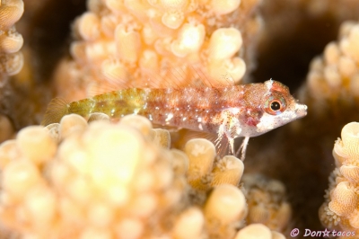 JUGEMテーマ:水中写真 色がツートンだからソメワケ? 条鰭綱 スズキ目 ヘビギンポ科 ヘビギンポ属 ソメワケヘビギンポ ケラマ諸島 座間味島沖 水深10m サイズ2cm 2019年6月 撮影:Don☆tacos