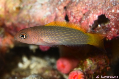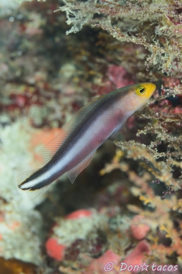 JUGEMテーマ:水中写真 ヘビギンポとベラは写真を撮ってガイドに聞くとハラスメントになるらしい。 しかし、ガイドが悩んでいる姿を見るとニヤッとしてしまう(爆) 条鰭綱 スズキ目 ヘビギンポ科 ニセヘビギンポ属 ニセヘビギンポ 石垣島 荒川沖 水深20m サイズ3cm 2019年7月 撮影:Don☆tacos