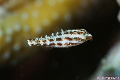 JUGEMテーマ:水中写真 セグロヘビギンポでいいのかな? それにしても川平湾には分からない魚がいる。 条鰭綱 スズキ目 ヘビギンポ科 ヘビギンポ属 セグロヘビギンポ 石垣島 川平湾 水深5m サイズ2cm 2019年10月 撮影:Don☆tacos 沖縄本島 牧港沖 水深10m サイズ2cm 2019年7月 撮影:Don☆tacos
