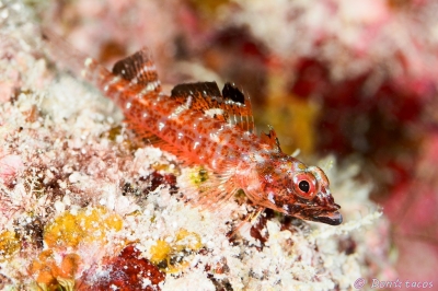 JUGEMテーマ:水中写真 アカヘビギンポだとかその辺にいる普通種と思っていましたが、ぜんぜん違うやつらしい。 条鰭綱 スズキ目 ヘビギンポ科 セラトブレグマ属 未同定種(Ceratobregma sp.1) 沖縄本島 砂辺沖 水深10m サイズ2cm 2014年11月 撮影:らぴぽん 2014年11月 撮影:Don☆tacos