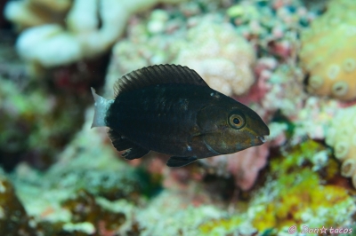 JUGEMテーマ:水中写真 ブダイ撮ってる人いるのかな? 一応写真撮ってますが、名前はよくわかっていません。 条鰭綱 スズキ目 ブダイ科 アオブダイ属 キビレブダイ 西表島 上原沖 水深10m サイズ10cm 2018年11月 撮影:Don☆tacos