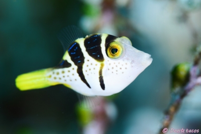 JUGEMテーマ:水中写真 昭和の人は知っている?!ハナキンです。 ハナキン=花の金曜日=仕事の後に飲んだくれる<−−タイトルに関係なし シマキンよりちょっとカラフルでオシャレです。 条鰭綱 フグ目 フグ科 キタマクラ属 ハナキンチャクフグ 沖縄本島 真栄田岬沖 水深10m サイズ3cm 2016年7月 撮影:Don☆tacos 石垣島 荒川沖 水深10m サイズ3cm 2016年10月 撮影:Don☆tacos 西表島 上原沖 水深5m サイズ3cm 2018年5月 撮影:Don☆tacos
