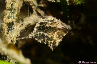 JUGEMテーマ:水中写真 フチドリの様な気がしますがいかがでしょう? 条鰭綱 フグ目 カワハギ科 フチドリカワハギ属 フチドリカワハギ 西表島 上原沖 水深5m サイズ2cm 2016年8月 撮影:Don☆tacos
