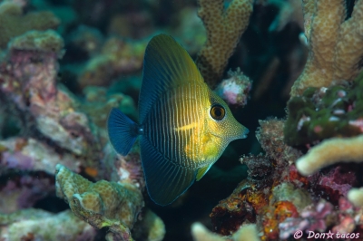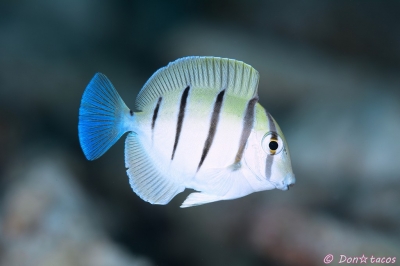 JUGEMテーマ:水中写真 まじめに撮ってる人は少ないか?いたら撮るか、程度? サンゴの上で撮ると画になるんですが、ついでだったので。 条鰭綱 スズキ目 ニザダイ科 ヒレナガハギ属 ゴマハギ 沖縄本島 真栄田岬沖 水深10m サイズ5cm 2015年7月 撮影:Don☆tacos