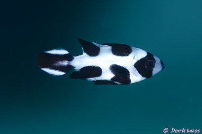 JUGEMテーマ:水中写真 モノトーンのパンダ柄なので、幼魚は人気者? 条鰭綱 スズキ目 フエダイ科 マダラタルミ属 マダラタルミ 沖縄本島 名護沖 水深10m サイズ3cm 2015年9月 撮影:Don☆tacos