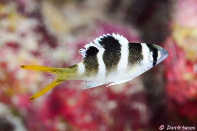 JUGEMテーマ:水中写真 普通はワイドで群ているのを撮ります。 小官のブログでは、あえて幼魚です。 条鰭綱 スズキ目 フエダイ科 フエダイ属 ヨスジフエダイ 石垣島 荒川沖 水深10m サイズ5cm 2019年7月 撮影:Don☆tacos 石垣島 竹富沖 水深10m サイズ5cm 2016年8月 撮影:Don☆tacos