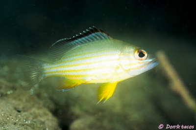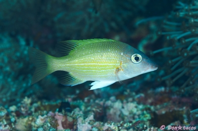 JUGEMテーマ:水中写真 フエダイもハタと同じく、釣り人に人気かも。 条鰭綱 スズキ目 フエダイ科 フエダイ属 オキフエダイ 西表島 上原沖 水深5m サイズ3cm 2015年6月 撮影:Don☆tacos
