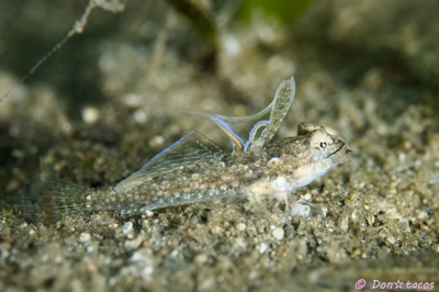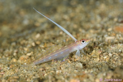 JUGEMテーマ:水中写真 体は地味だけど背びれがスゴイ。 条鰭綱 スズキ目 ネズッポ科 ハナビヌメリ属 コガタハナビヌメリ 西表島 上原沖 水深10m サイズ3cm 2018年5月 撮影:Don☆tacos