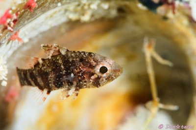 JUGEMテーマ:水中写真 ガレをめくらないと見られないやつです。 地味なので写真映えしないけど、レア度高いらしい。 条鰭綱 スズキ目 テンジクダイ科 シボリ属 シボリダマシ セブ マクタン島 マクタン沖 水深10m サイズ3cm 2015年1月 撮影:Don☆tacos