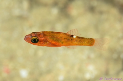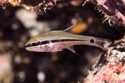 JUGEMテーマ:水中写真 でかく撮りすぎた、尻尾切れた! 洞窟で撮影しましたが、難しいところは、光を当てると向きを変えてしまいます。 被写体自体は動きがゆっくりで撮りやすいのですが、フォーカス用の光に気を使います。 条鰭綱 スズキ目 テンジクダイ科 ヌメリテンジクダイ属 シマクダリボウズギスモドキ セブ マクタン島 マクタン沖 水深30m サイズ5cm 2015年1月 撮影:Don☆tacos