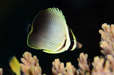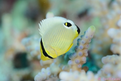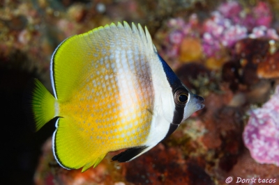 JUGEMテーマ:水中写真 群れないチョウチョウウオだそうです。 アクアリストには希少らしいが、ダイバーとしてはよく見かけるらしい。 条鰭綱 スズキ目 チョウチョウウオ科 チョウチョウウオ属 ミゾレチョウチョウウオ セブ マクタン島 マクタン沖 水深10m サイズ5cm 2016年1月 撮影:Don☆tacos 石垣島 荒川沖 水深5m サイズ3cm 2018年8月 撮影:Don☆tacos
