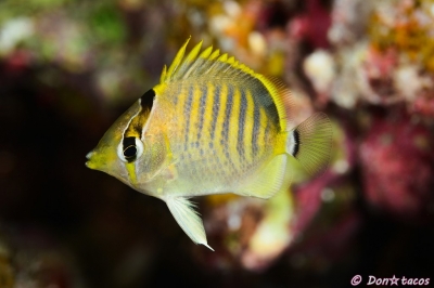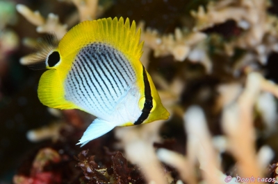 JUGEMテーマ:水中写真 見事にとんでますな! チョウチョウウオなのにトノサマダイとは、これ如何に? 条鰭綱 スズキ目 チョウチョウウオ科 チョウチョウウオ属 スミツキトノサマダイ 石垣島 川平湾 水深5m サイズ2cm 2017年9月 撮影:Don☆tacos