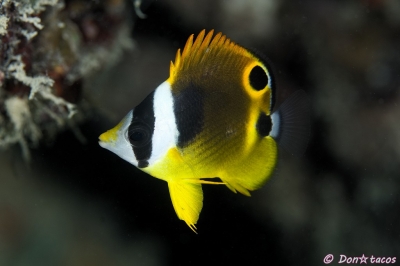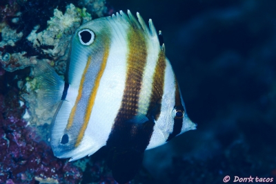 JUGEMテーマ:水中写真 ちょっとサイズが大きかった、咄嗟に引き切れなかった。 条鰭綱 スズキ目 チョウチョウウオ科 タキゲンロクダイ属 タキゲンロクダイ セブ マクタン島 マクタン沖 水深10m サイズ15cm 2016年1月 撮影:Don☆tacos