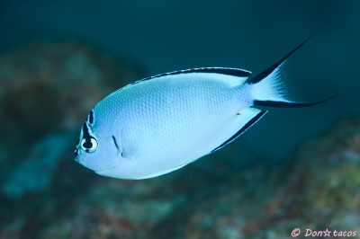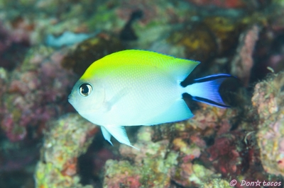 JUGEMテーマ:水中写真 成魚は縦じまがあります。 条鰭綱 スズキ目 キンチャクダイ科 タテジマヤッコ属 ヒレナガヤッコ 石垣島 荒川沖 水深20m サイズ20cm 2016年7月 撮影:Don☆tacos