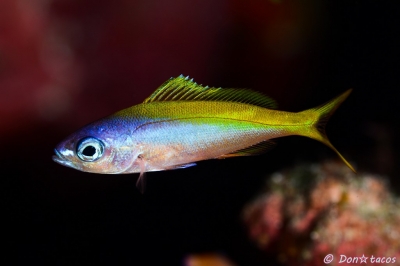 JUGEMテーマ:水中写真 群で撮るのが普通ですが、幼魚は根にいます。 条鰭綱 スズキ目 タカサゴ科 タカサゴ属 ウメイロモドキ 石垣島 荒川沖 水深10m サイズ5cm 2016年6月 撮影:Don☆tacos