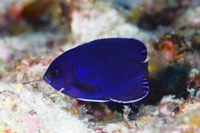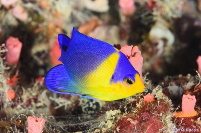 JUGEMテーマ:水中写真 こちらは水中でも瑠璃です。 条鰭綱 スズキ目 キンチャクダイ科 アブラヤッコ属 ルリヤッコ 石垣島 荒川沖 水深10m サイズ5cm 2017年7月 撮影:Don☆tacos