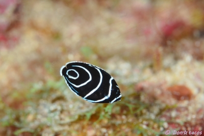 JUGEMテーマ:水中写真 湾内の泥地が好きみたいなので写真がイマイチ決まらない。 条鰭綱 スズキ目 キンチャクダイ科 キンチャクダイ属 チリメンヤッコ 西表島 上原沖 水深10m サイズ10cm 2018年11月 撮影:Don☆tacos