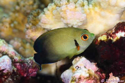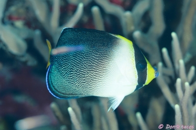 JUGEMテーマ:水中写真 パリコレとかでモデルがまぶたをブルーにしてるみたいな魚。 魚にまぶたありませんからー!斬る! 条鰭綱 スズキ目 キンチャクダイ科 アブラヤッコ属 ソメワケヤッコ 石垣島 荒川沖 水深10m サイズ5cm 2015年11月 撮影:Don☆tacos 石垣島 竹富沖 水深10m サイズ5cm 2016年4月 撮影:Don☆tacos