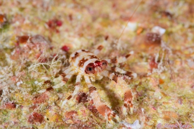 JUGEMテーマ:水中写真 よく分からないが、たぶんこの名前、分からない場合言ったもん勝ち。 間違えていたら、ご存じ方教えてください。 十脚目 抱卵亜目 異尾下目 コシオリエビ上科 コシオリエビ科 コシオリエビ属 フタスジウミシダコシオリエビ 西表島 上原沖 水深10m サイズ2cm 2015年6月 撮影:Don☆tacos