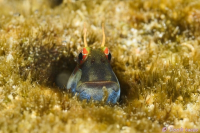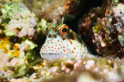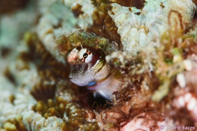 JUGEMテーマ:水中写真 水中写真の人気者、超浅場にいることが多いのでうねりに負けないように撮ります。 条鰭綱 スズキ目 イソギンポ科 ハナカエルウオ属 モンツキカエルウオ 石垣島 荒川沖 水深2m サイズ3cm 2015年6月 撮影:Don☆tacos