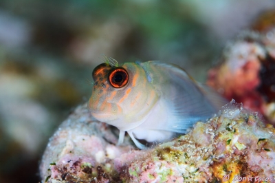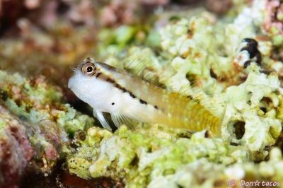 JUGEMテーマ:水中写真 外人のゴイシギンポ、名前が長い。 条鰭綱 スズキ目 イソギンポ科 ニラミギンポ属 ツインスポットコームトゥースブレニー セブ マクタン島 マクタン沖 水深5m サイズ5cm 2015年1月 撮影:Don☆tacos