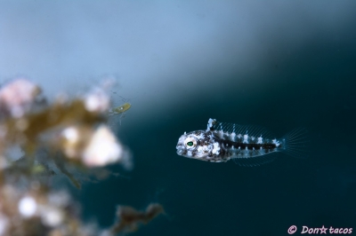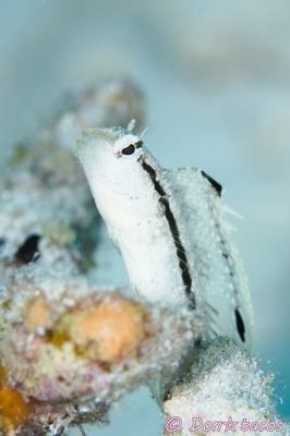 JUGEMテーマ:水中写真 砂地の根、海藻、藻、網、ロープなど人工物についています。 探しやすいけど、写しにくい!? 条鰭綱 スズキ目 イソギンポ科 ハタタテギンポ属 ハタタテギンポ 石垣島 竹富沖 水深10m サイズ2cm 2016年5月 撮影:Don☆tacos