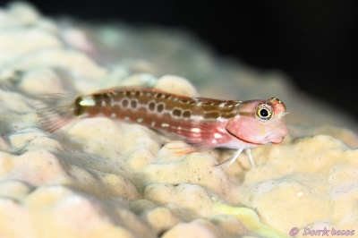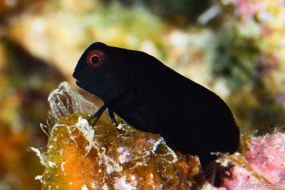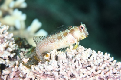 JUGEMテーマ:水中写真 カラフルなサンゴに乗ると決まるんだけど。正目から見るとイシガキカエルウオ似かも。 条鰭綱 スズキ目 イソギンポ科 ニラミギンポ属 ゴイシギンポ 石垣島 荒川沖 水深10m サイズ3cm 2019年7月 撮影:Don☆tacos