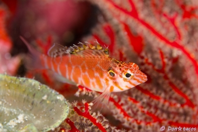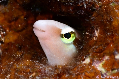 JUGEMテーマ:水中写真 穴に入っているギンポは多いけど、口がとがっているし、目が怒ってるし、 そんな感じで距離をおいてしまう。 条鰭綱 スズキ目 イソギンポ科 クロスジギンポ属 クロスジギンポ 石垣島 竹富沖 水深5m サイズ10cm(推定) 2015年11月 撮影:Don☆tacos