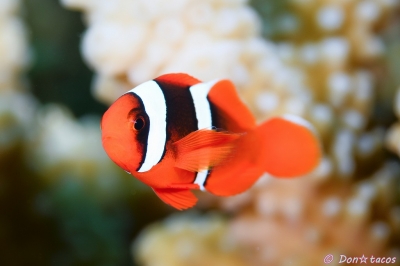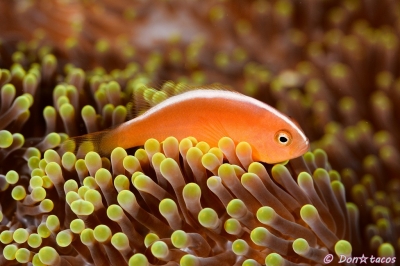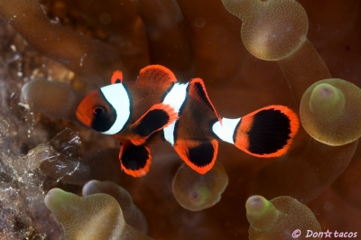 JUGEMテーマ:水中写真 ハナビラと名の付く魚は注目度が低い?? でも、イソギンチャクが変われば!? 条鰭綱 スズキ目 スズメダイ科 クマノミ属 ハナビラクマノミ 石垣島 竹富沖 水深10m サイズ3cm 2016年9月 撮影:Don☆tacos
