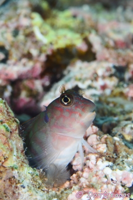 JUGEMテーマ:水中写真 カエルウオの中でタテガミにあるやつ、写しかたでまつ毛にも・・見えないか。 条鰭綱 スズキ目 イソギンポ科 タテガミカエルウオ属 アミメミノカエルウオ 石垣島 大崎沖 水深3m サイズ3cm 2015年6月 撮影:Don☆tacos 石垣島 荒川沖 水深3m サイズ3cm 2016年5月 撮影:Don☆tacos