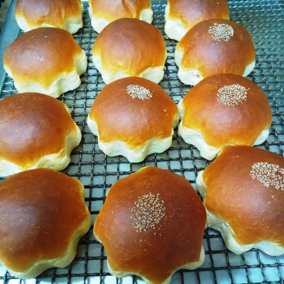 JUGEMテーマ:*食べ物の写真* ご来店くださったお客さま、 中央病院の売店、高田西城病院の売店、教育プラザで お求めくださったお客さま、 ありがとうございました。 クーロンヌ(王冠という意味です!)とても高さが出て焼けました!! スタッフFが、成形を工夫したとのこと!!いいですね☆ たまごとバターをたっぷり使った、リッチなブリオッシュ生地です。 白いのは、パールシュガーという、砂糖です。 ブリオッシュ食パンもございます。 皆さまのご来店を、ス...