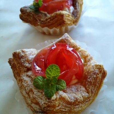 JUGEMテーマ:*食べ物の写真* ご来店くださったお客さま、 中央病院の売店でお求めくださったお客さま、 ありがとうございました。 今日は『いいりんごの日』だとFMJで言っていましたよ 11(いい)5(りんご)といいう、語呂合わせですね! ということで、 アップルデニッシュ はいかがでしょうか?! キタイチ果樹園さんの復興りんごの紅玉を使っています。 ちなみに、紅玉は10月末で完売し、今は王林が旬でたくさん採れているそうです。 デニッシュの仕上げにミントを...