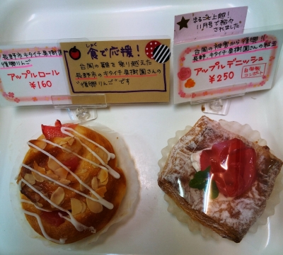 JUGEMテーマ:*食べ物の写真* 寒い一日でしたね! ご来店くださったお客さま、 中央病院の売店や、上越市役所の生協でお求めくださったお客さま、 ありがとうございました。 アップルデニッシュやアップルロールはいかがでしょうか?! キタイチ果樹園さんの、復興りんごの紅玉をコンポートにして 使っています!! 甘酸っぱい紅玉が大好きなんです!色もとても綺麗ですしね☆ 紅玉の販売は終了したそうです。 ただいま、王林を販売中です! ふじの予約を受け付け...