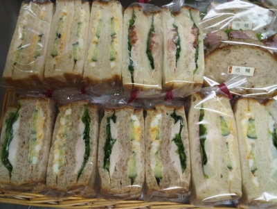 JUGEMテーマ:*食べ物の写真* ご来店くださったお客さま、ありがとうございました。 だいぶ気温が低くなってきて、パンの発酵に時間がかかります。 焼き上がり時間が、少し遅れる場合もありますことを、 ご了承お願いいたします。 明日は、定休日になります。 ご不便をおかけしますが、どうぞよろしくお願いいたします。 朝一番の私の仕事は、サンドウィッチを作ることです。 今日は、スタッフが一人休みになったので、途中で追加を作れないことを想定し、 朝、一気にたく...