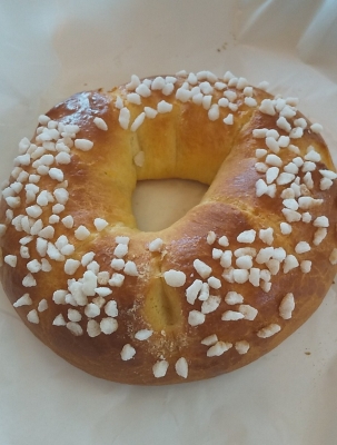 JUGEMテーマ:*食べ物の写真* ご来店くださったお客さま、 中央病院の売店や、西城病院の売店でお求めくださったお客さま、 ありがとうございました。 卵とバターをふんだんに使った、 ブリオッシュ生地で作ったクーロンヌ(王冠の意味) とてもきれいに焼けました!!!! 新人Fが成形、焼きを担当、よくできました◎ 白いのはパールシュガー(あられ糖)です。 そのままでも、トーストしてもとてもおいしいのですが、 フレンチトーストもおススメです!!!