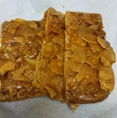 JUGEMテーマ:*食べ物の写真* ご来店くださったお客さま、 中央病院の売店や、上越市役所の生協でお求めくださったお客さま、 ありがとうございました。 焼き菓子 フロランタン 新発売です!!! クッキー生地に、キャラメルでコーティングしたスライスアーモンドを のせて焼いたお菓子です。 切るタイミングが難しく、冷え過ぎると割れてしまいます。 今日はちょっと遅すぎて、パリンと割れてしまったものがいくつかありました。 何回かやってみて、コツ...
