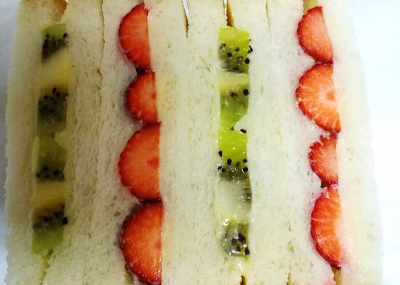 JUGEMテーマ:*食べ物の写真* 昨日、今日と寒かったですね。 ご来店くださったお客さま、 中央病院の売店でお求めくださったお客さま、 ありがとうございました。 フルーツサンドの、いちごの切り方を変えてみました! (先日買った本を参考に!!!) なかなか、カットした時の断面をイメージできないのですが・・・・・ イメージチェンジはできたと思います!!! いろいろ工夫して、綺麗な美味しいサンドイッチを作りたいです。