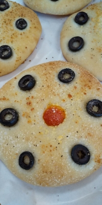 JUGEMテーマ:*食べ物の写真* ご来店くださったお客さま、 中央病院の売店でお求めくださったお客さま、 ありがとうございました。 オリーブのフォカッチャ新発売です!!!! ピザとフォカッチャの生地は、 信州産小麦粉「華梓(はなあずさ)」を100%使用しています。 生地を丸く伸ばします。 オリーブオイル、ゲラントの塩、オリーブ、ミニトマト、粉チーズ、 ブラック・ペッパーをトッピングし、オーブンへ!!!! 生地のおいしさが生かされた、フォカッチャです。 ...