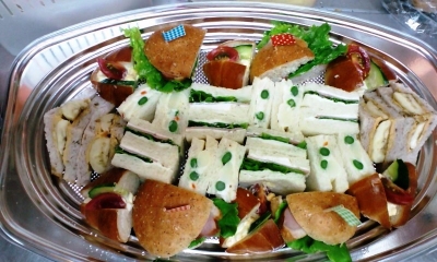 JUGEMテーマ:*食べ物の写真* ご来店くださったお客さま、 中央病院の売店でお求めくださったお客さま、 ありがとうございました。 今日はスタッフが一人休みなので、4時半には仕事を始めよう!!と店に行ったのですが、 忘れ物をして、家に取りに帰るというアクシデント(泣) 開店時には、いつもと変わらない品揃えができました。 ご注文のサンドウィッチ・オードブルをお作りしました。 今までと、ちょっと違うデザインにしました。 喜んでいただけたでしょうか?!