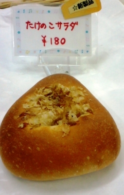JUGEMテーマ:*食べ物の写真* ご来店くださったお客さま、 中央病院の売店や、外販でお求めくださったお客さま、 ありがとうございました。 たけのこが旬ですね!新鮮な物はとても柔らかいです。 細かく切って、炒めて、鰹節を塗し、ゴマとマヨネーズで合えたたけのこサラダ! パンの具にしちゃいましたよ!!!!鰹節をトッピング〜〜 とっても良くマッチするんです〜〜☆ どうぞ、お召し上がりくださいね^^