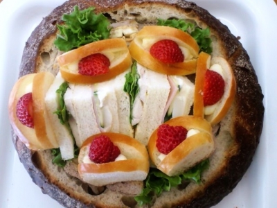 JUGEMテーマ:*食べ物の写真* ご来店くださったお客さま、 中央病院の売店や、外販でお求めくださったお客さま、 ありがとうございました。 お子さんのお誕生日にと、シュープリーズのご注文をいただきました。 大きな大きなカンパーニュの中身をくりぬいて、サンドウィッチを詰めます。 サンドウィッチは2段に詰めてあります。 引き取りに見えたとき、 『わぁ〜〜〜すごい!!!!』 『素敵!!可愛い~~~~~』 と、歓声が上がりました。 嬉しい瞬間ですね!!...