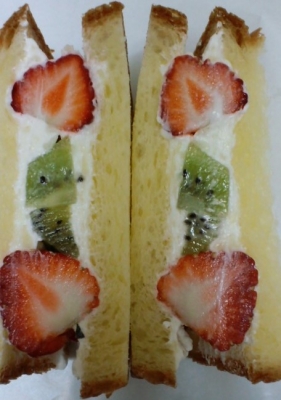 JUGEMテーマ:*食べ物の写真* 昨日は31℃を超える猛暑!!! グッタリ疲れて、ブログの更新もできませんでした、ごめんなさい。 一転して今日は肌寒さを感じる一日でした。気温差が激しすぎませんか・・・・・ 雨の中、ご来店くださったお客さま、 中央病院の売店でお求めくださったお客さま、 ありがとうございました。 ブリオッシュ食パンでフルーツサンドを作りました! キウイの緑と、いちご「越後姫」の赤のコントラストが美しいですね!! 味のバランスもナイスです。 ...