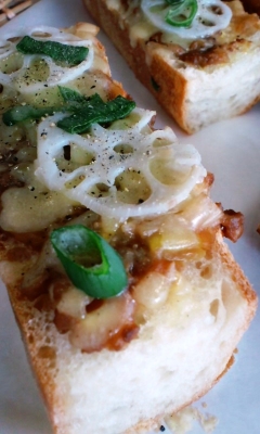 JUGEMテーマ:*食べ物の写真* ご来店くださったお客さま、 中央病院の売店や、外販でお求めくださったお客さま、 ありがとうございました。 昨夜は、シュトレンの包装をしていて、遅くまでかかってしまい、 ブログの更新ができませんでした。 年賀状の用意もしていないのです・・・・どうしよう・・・・(涙) さて、またまたネギみそのタルティーヌです。 今日はカンパーニュが無かったので、バゲットで作ってみました。 もちろん、横山さんちのレンコンをトッピング〜〜☆ ...