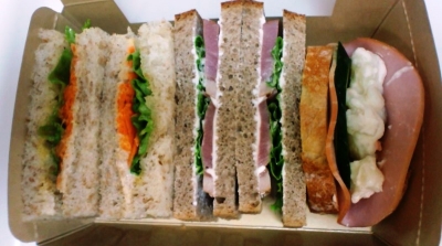 JUGEMテーマ:*食べ物の写真* 今朝は寒かったですね!!!! ご来店くださったお客さま、 中央病院の売店でお求めくださったお客さま、 ありがとうございました。 サンドウィッチボックスのご注文を頂き、お作りしました。 ハード系のパンで!というご希望です。 ・合鴨、レタス、クリームチーズ (ケルニッシュ) ・ツナ、ニンジンサラダ、レタス (グラハムブレッド) ・ハム、ポテトサラダ、きゅうり (バゲット) ご注文承っております。 電話:025−526−636...