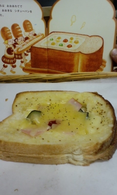 JUGEMテーマ:*食べ物の写真* ご来店くださったお客さま、 中央病院の売店や、外販や、上越地域振興局の生協でお求めくださったお客さま、 ありがとうございました。 昨日のブログで、絵本『パンのおうさまとシチューパン』のことを書きましたが、 今日の夕方、仕事が一段落したので、シチューパンを作ってみましたよ☆ 牧場の食パン、ベシャメルソース、彩り野菜、ハムとチーズ!!! ちょっと、パンの厚さが足りませんが・・・・・ 美味しくできました!! 『パンのおうさまのシチューパン』と名付...