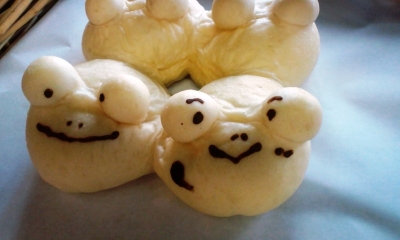 JUGEMテーマ:*食べ物の写真* 昨日よりは気温が少し低く、過ごしやすかったです。 まだ、大雨の影響があちこちで出ているようです。 ご来店くださったお客さま、 中央病院の売店や、外販でお求めくださったお客さま、 ありがとうございました。 かえるのちぎりぱん スタッフFが作りました! ココアをとかして、目や鼻や口を描いています!! ユーモラスな、かえるちゃんたち◎◎ 今日は、中にメロンクリームが入っているんですって!!! 皆さ...