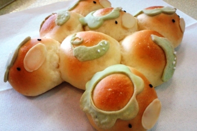JUGEMテーマ:*食べ物の写真* 暑い中、ご来店くださったお客さま、 中央病院の売店や、外販でお求めくださったお客さま ありがとうございました。 スタッフFが、忙しい作業の合間に作った、 カッパのちぎりパン!!!!! 超かわいいんですけど〜〜〜〜〜〜〜 思わずニヤニヤ^^ カッパも愛らしいんですが、きゅうりも良くできていますよ☆ ご覧になりたい方は、店内に展示してありますので、どうぞご来店くださいませ。 スタッフ一同、お待ちしております。