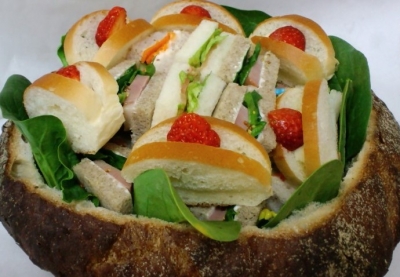 JUGEMテーマ:*食べ物の写真* ご来店くださったお客さま、 中央病院の売店や、上越市役所の生協でお求めくださったお客さま、 ありがとうございました。 今日は、ご注文のシュープリーズをお作りしました。 パンは4種類使いました。 ライ麦50%のケルニッシュ、ウォールナッツブレッド、食パン、コッペパン。 具材は、合鴨スモーク、スモークサーモン、ポテトサラダ、いちごです。 無農薬、無化学肥料のほうれん草を、回りに飾ってみました^^ サンドウィッチは、2段に詰めてありますよ...