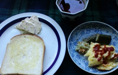 JUGEMテーマ:*食べ物の写真* 定休日の今日は、遅い朝食。 三和区のさんわ牛乳さんの美味しい牛乳を、 水の50%入れたリッチな「牧場の食パン」 蓋をしないで、山型に焼いています! トーストしていただきました!!ほんのりミルクの香り^^ スクランブルエッグ(刻みピクルス・義妹作、きゅうりのピクルス・知人からの頂き物) クリームチーズ(『ねこみつ』さんのはちみつ、ブラックペッパーをひとふり!) 紅茶(今朝は涼しかったので、温かい飲み物で) 休日は、...
