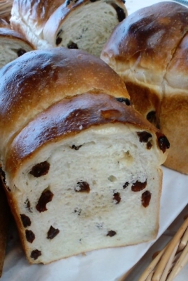 JUGEMテーマ:*食べ物の写真* 日曜日で少し疲れが取れ、新しい週も頑張ってまいります! ぶどう食パン たくさんのお客さまから愛されております! 私も朝食にいただきました! ラム酒に漬けたレーズンを、たっぷり練りこんでいます☆ 食パンの生地は、もっちり、しっとり!! 今日は上越市役所生協で販売いたします。 皆さまのご来店を、スタッフ一同お待ちしております。